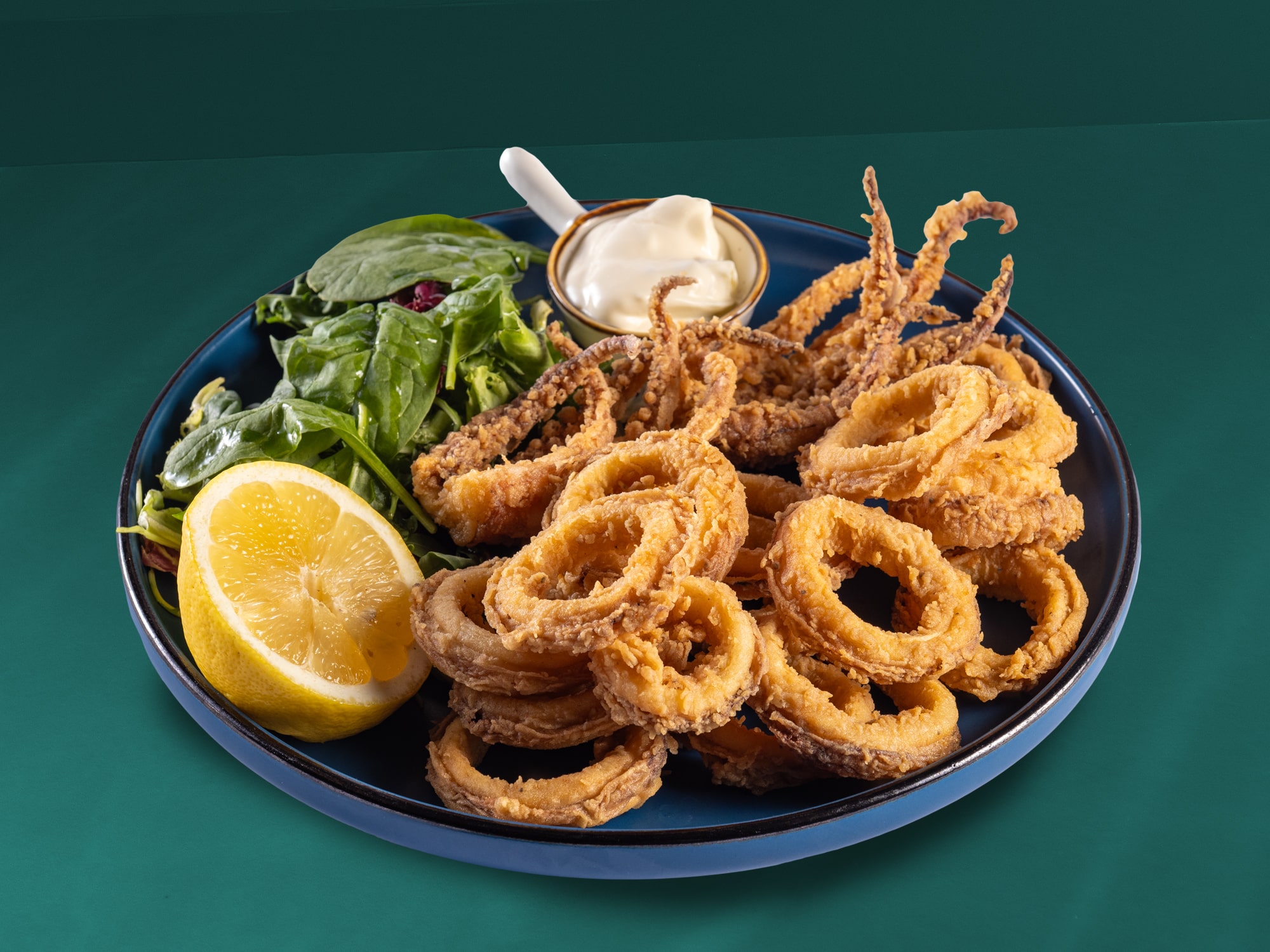 Calamar, făină, lămâie, mix de