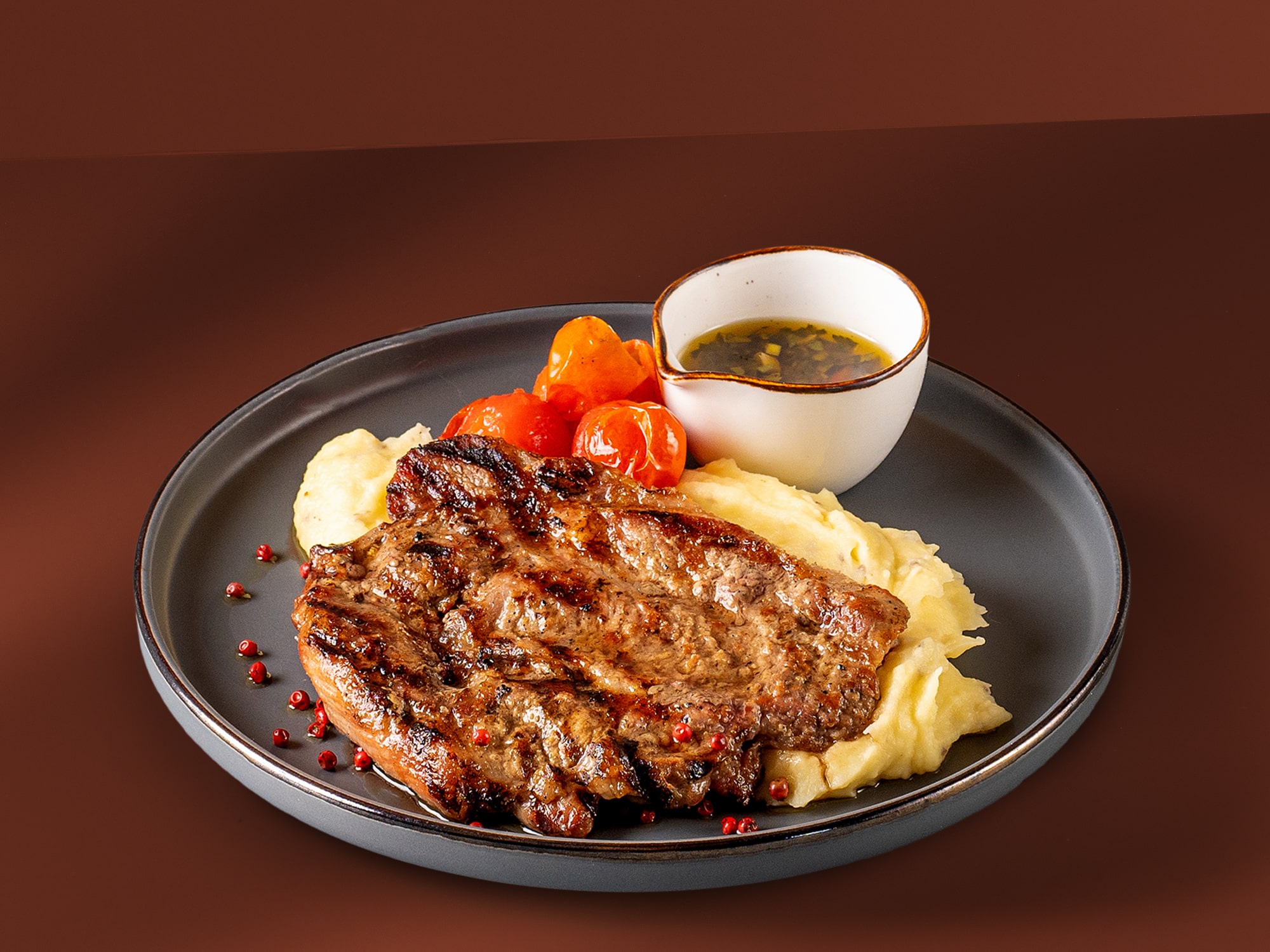 Ceafă de porc Iberico, piure de cartofi , cremă